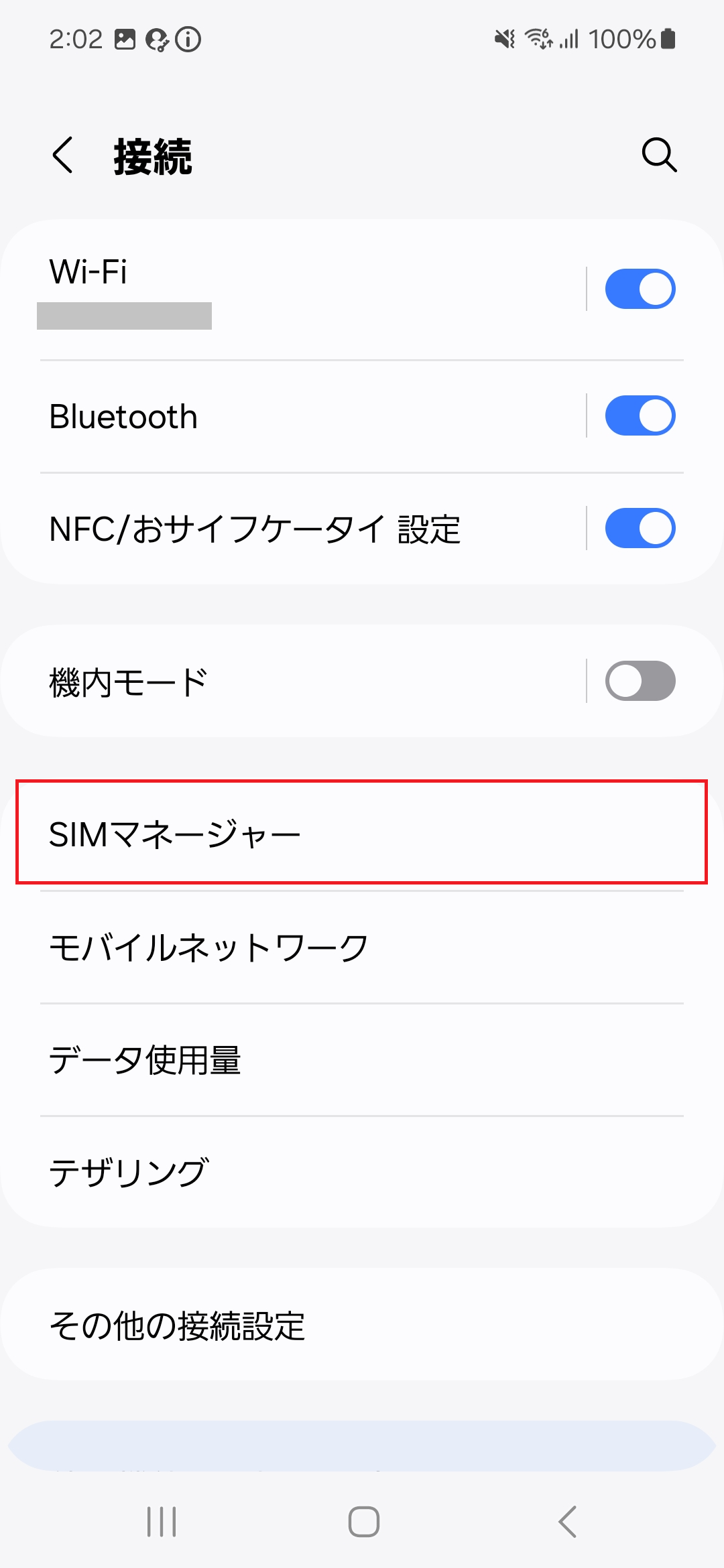 - 「設定」→「接続」→「SIMマネージャー」より、