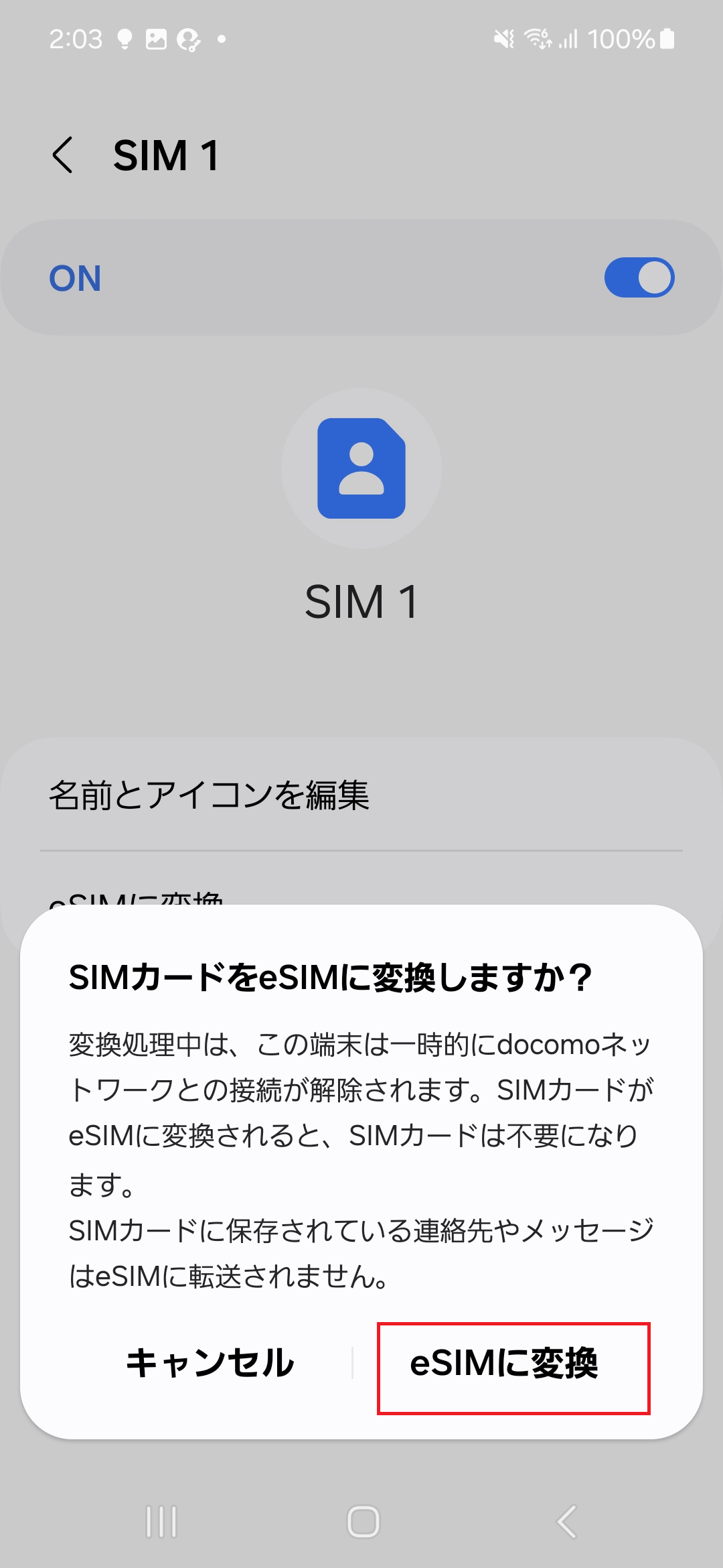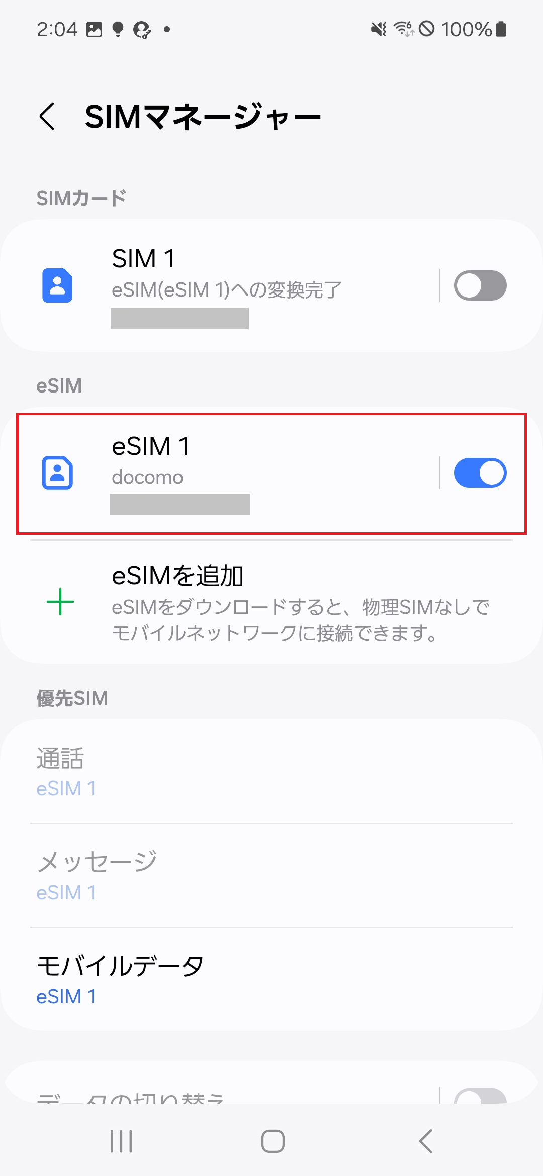 ドコモSIMカードのままご利用をされたい場合は、お手数をおかけしますがドコモオンラインショップセンター(0120-131-067)へご契約者ご本人さまよりお電話をお願いいたします。 - Android eSIM転送機能の画面が表示されない、eSIM転送が行えない場合は、ドコモオンラインショップでの「eSIM新規・契約変更」からお手続きを実施ください。