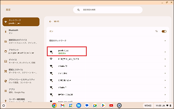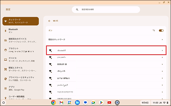 【3】任意のWi-Fiネットワークを選択します。